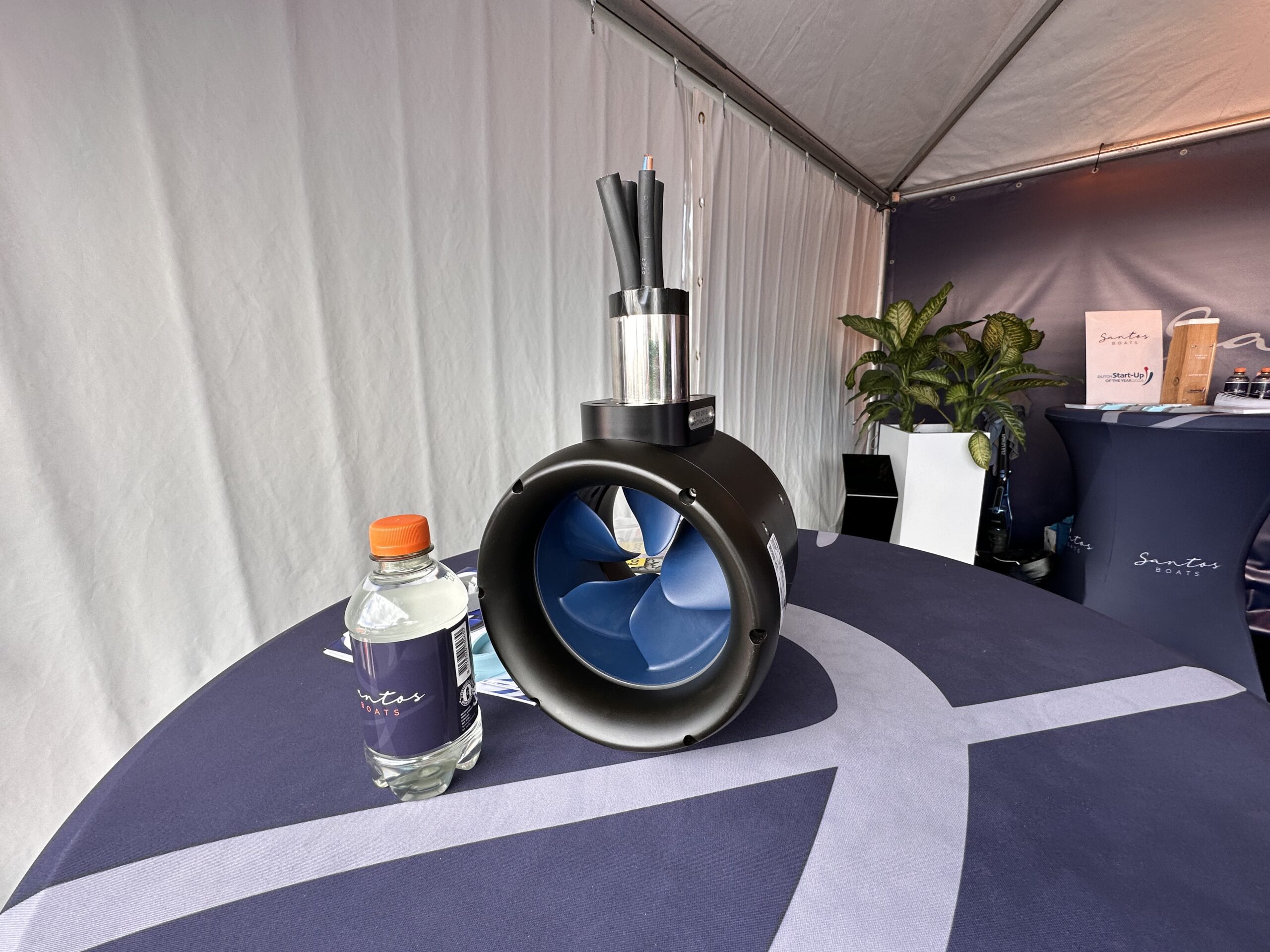 Dutch company Santos Boats had a pair of 5.5 meter boats both utilizing a 5 kw Rim Drive pod motor. This unique motor features both the stator and rotor spinning in the outer ‘rim’, and containing propeller blades in the center which creates an efficient shrouded prop motor with excellent cooling properties. These boats also contain a 31.2 kWh battery operating at 48v, and this whole package is offered at €32,000 euros, enabling an affordable and fun option for families wanting a fun little cruiser.