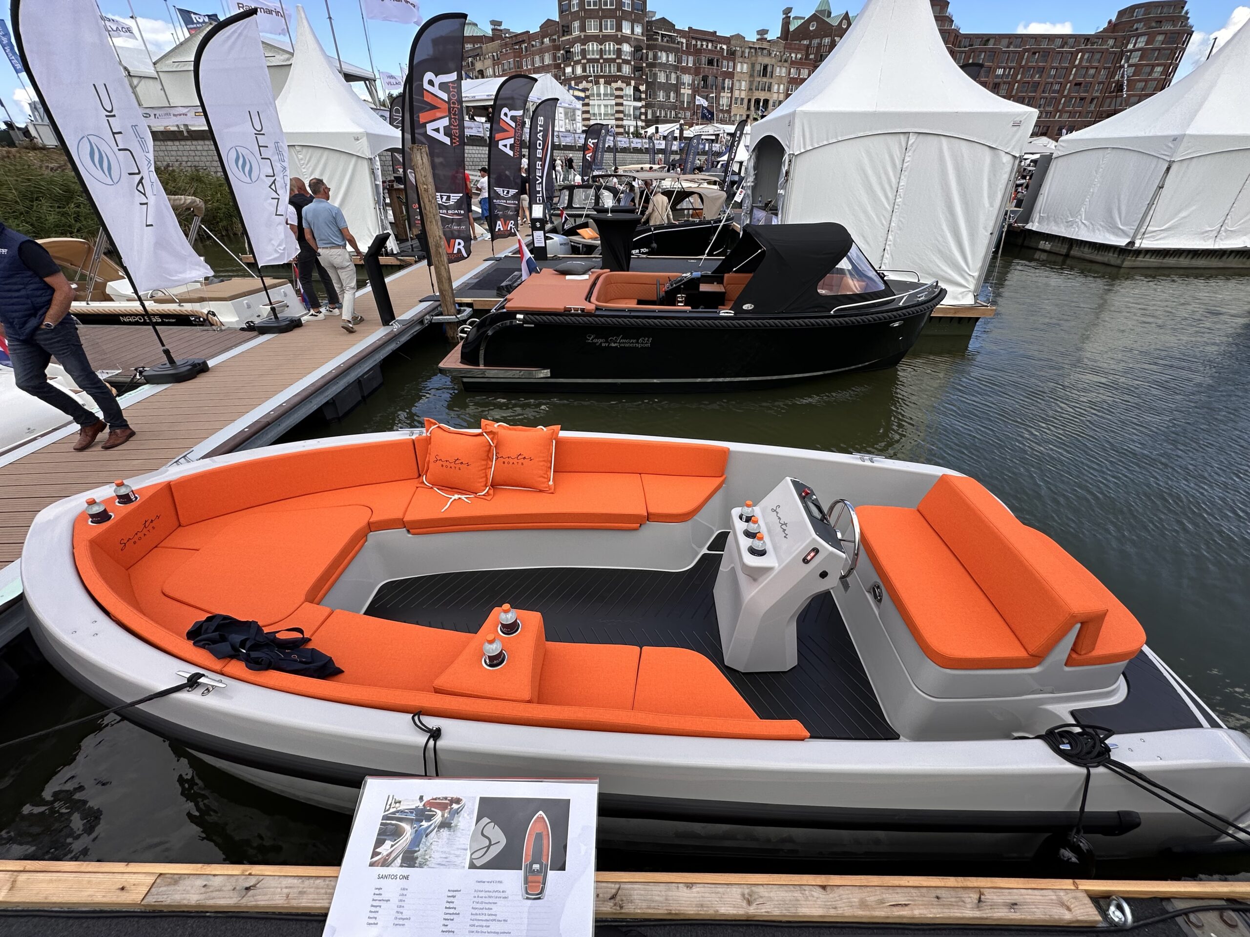 One of the biggest electric boat displays was from the company De Stille Boot, which means “the silent boat” in Dutch. They had no less than 4 different electric boats, with a couple of beautiful painted aluminum boats from electric boat builder Qrafter, and one from Timeless Yachts designed to look good in any decade.